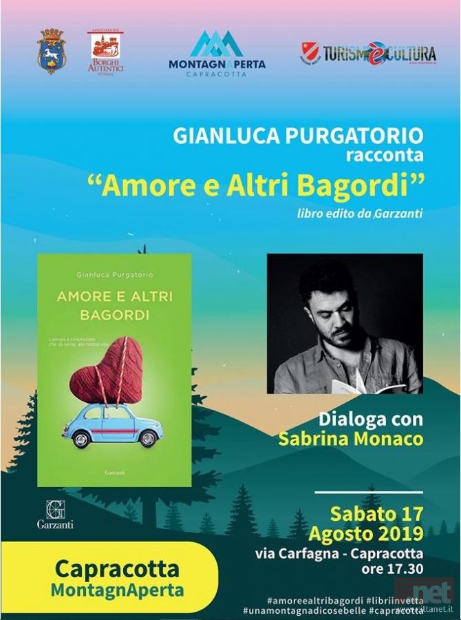 Inserito all’interno del calendario di eventi “montagnAperta” vincitori del bando “Turismo è Cultura” della Regione Molise, l’incontro si svolgerà alle 17.30 presso la scalinata di via Carfagna dove Purgatorio dialogherà con Sabrina Monaco e con i lettori presentando la raccolta di componimenti poetici e riflessioni narrative edita da Garzanti che raccontano la storia di un uomo che incontra l'amore, proprio quando credeva che non sarebbe più accaduto...