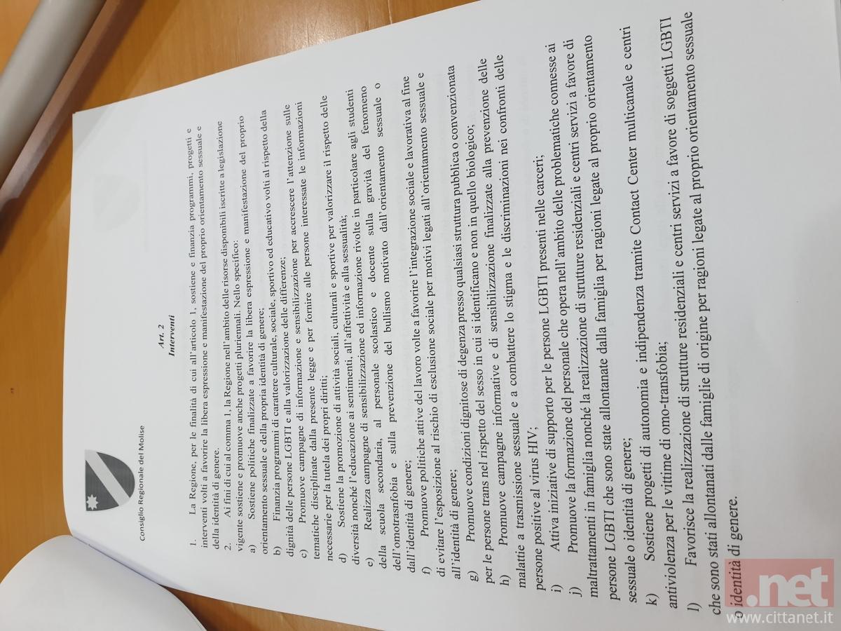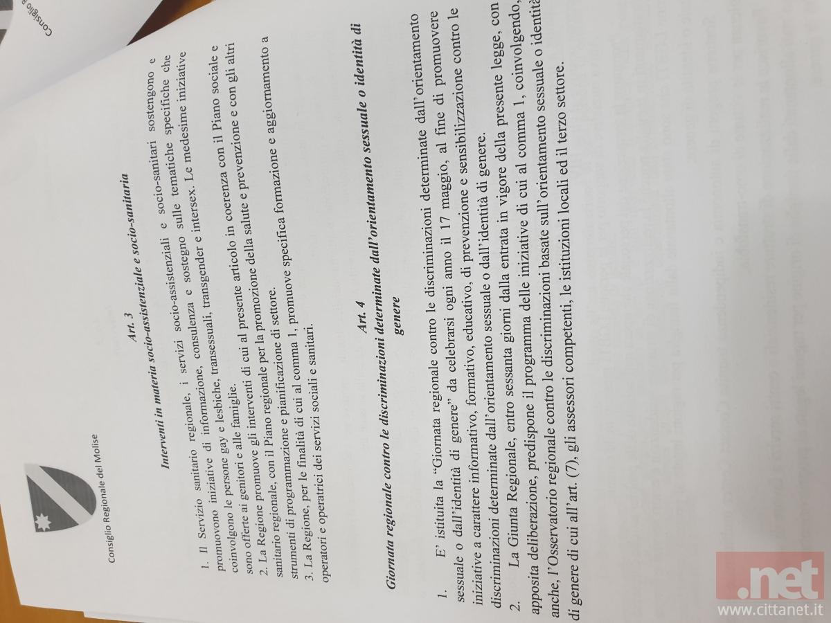 Tra le cose da istituire c' è l' osservatorio regionale sulle discriminazioni e sulle violenze legate all' identità di genere e all' orientamento sessuale. Poi è prevista anche l' istituzione di una giornata regionale in cui si parli di queste tematiche e va fissata il 17 maggio. Ma c' è anche un dettato normativo ben preciso contro la violenza verso le persone Lgbt.
