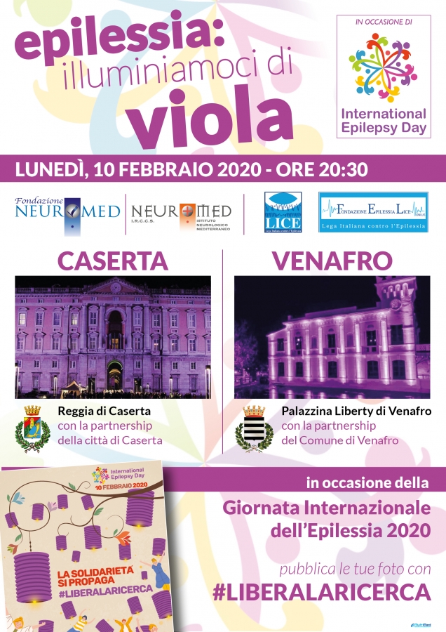 In collaborazione con la Lega Italiana contro l’Epilessia (LICE), lunedì 10 febbraio, a partire dalle 20,30, due città di due diverse regioni vedranno accendersi di viola un luogo storico. In particolare: la Reggia di Caserta, in Campania e La Palazzina Liberty di Venafro, in Molise. Per l’occasione, poi, verrà illuminata di viola anche la Rocca Janula di Cassino, nel Lazio. Sarà un modo per richiamare l’attenzione dei cittadini verso una patologia che sempre più la medicina affronta con efficacia e successo.