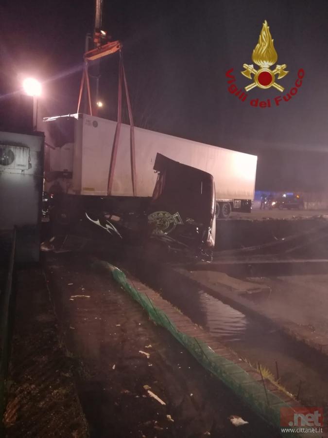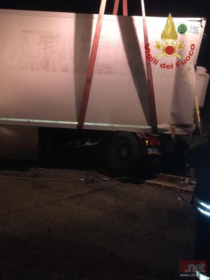 Un autoarticolato era uscito dalla sede stradale; il veicolo travolgendo la