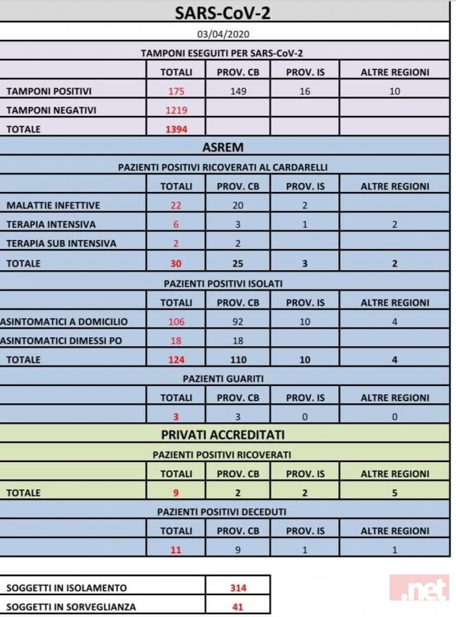 Sono 124 i positivi asintomatici. Centosei non sono mai passati per le cure ospedaliere e 18 sono quelli dimessi. I guariti restano solo 3 e i deceduti 11. Stabile la questione dei ricoveri al Neuromed di Pozzilli.