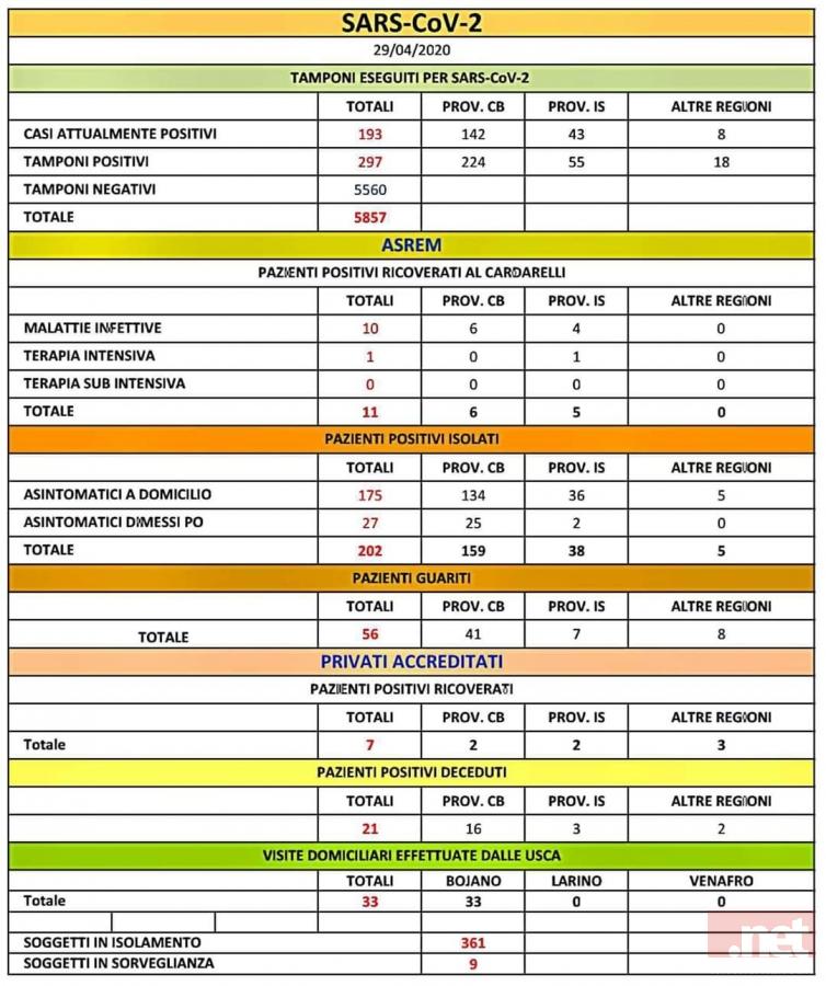 Sono 202 i pazienti positivi isolati sono 202 di cui 27 dimessi dagli ospedali e 175 asintomatici a domicilio. I guariti salgono a 56. Mentre i ricoverati al Neuromed restano ancora 7. I pazienti positivi deceduti sono 21.