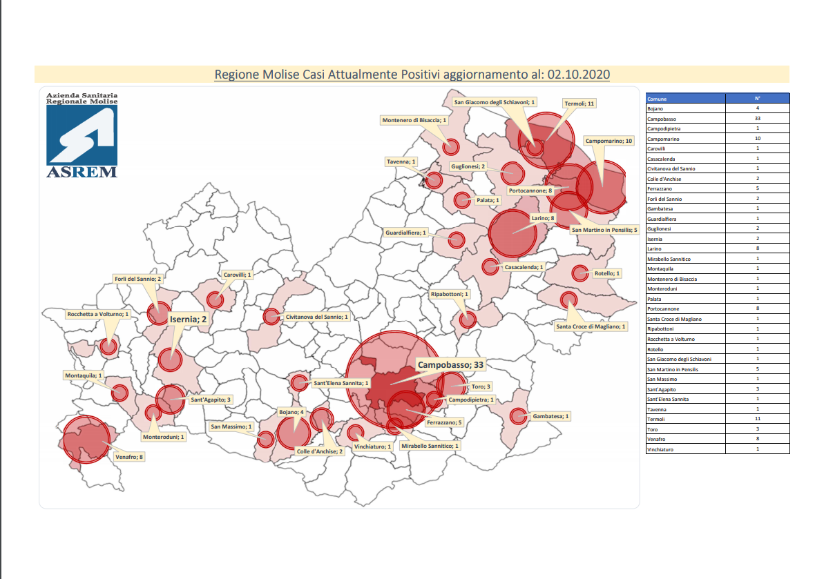 Un bollettino pesante quello di oggi dove hanno processato 494 tamponi. Sono 15 i positivi di oggi: 5 a Toro, 2 a Campobasso, 1 ad Agnone, 1 a Sant'Agapito, 1 a Montenero Valcocchiara, 1 a Campomarino, 1 a Gambatesa, 1 Colle D'Anchise, 1 a Isernia e 1 a Sessano del Molise. E' la prima volta che si ottiene un numero così consistente e che non è concentrato tutto su un cluster.