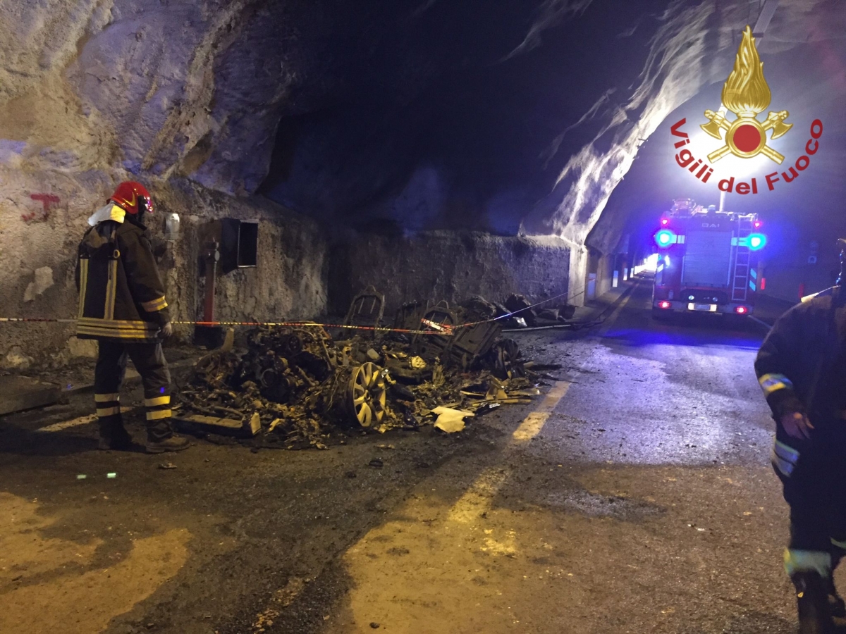 I VF di Isernia bloccati dal fumo e dalle auto in colonna hanno raggiunto a piedi muniti di autorespiratori il luogo del sinistro e utilizzando l’acqua dell’impianto idrico presente in galleria hanno iniziato le fasi di spegnimento. Contemporaneamente sopraggiungeva lato Cassino l’altra squadra dei Vigili del Fuoco che riusciva a entrare all’interno della galleria con i mezzi in dotazione poiché le correnti di aria rendevano tale accesso libero dal fumo
