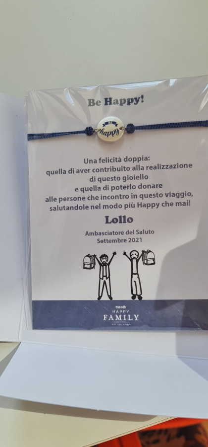 Lollo, così è conosociuto Lorenzo a Savigliano suo paese di origine, compie il suo tour in giro per l’Italia consegnando un gagliardetto che reca la scritta “Ambasciatore del saluto” insieme ad un braccialetto con la scritta “Be happy” e un messaggio fin troppo chiaro: “Una felicità doppia: quella di aver contribuito alla realizzazione di questo gioiello e quella di poterlo donare alle persone che incontro in questo viaggio, salutandole nel modo più happy che mai!”.