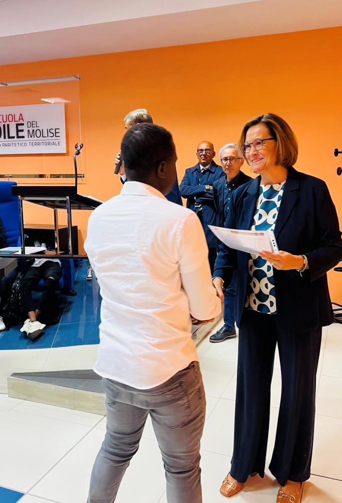 Nella mattinata odierna, venerdì 13 settembre 2024, si è svolto, presso la sede della Scuola Edile del Molise, l’evento conclusivo del progetto “Costruendo Lavoro”, corso di formazione professionale, realizzato nell’ambito delle iniziative previste dal “Protocollo d’Intesa per favorire l’inserimento socio lavorativo di richiedenti e titolari di protezione internazionale e altri cittadini stranieri in condizioni di vulnerabilità”, sottoscritto, lo scorso 23 gennaio 2024, dal Prefetto di Isernia e dai vertici della Scuola Edile del Molise ed ANCE, associazioni rappresentative del settore edile e delle costruzioni, nonché dai rappresentanti delle altre organizzazioni sindacali di categoria.