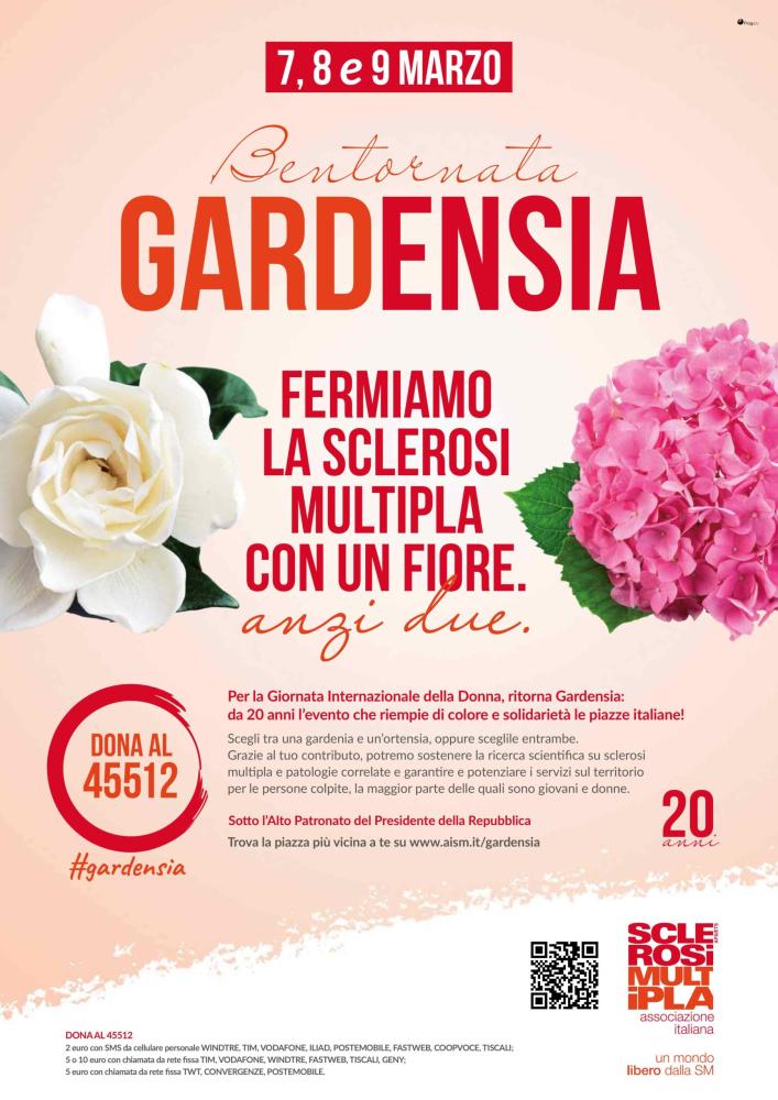 Gardensia: due decenni di fiori e solidarietà Da due decenni, questa manifestazione porta nelle piazze italiane fiori e impegno per la ricerca. Evolvendosi da 'Fiorincittà ' alla profumatissima Gardenia fino all'attuale Gardensia, il progetto ha consolidato il suo ruolo nella sensibilizzazione sulla SM e nella raccolta fondi. Due fiori, una gardenia e un'ortensia, rappresentano il forte legame tra le donne e la SM, una malattia che colpisce il doppio delle donne rispetto agli uomini.