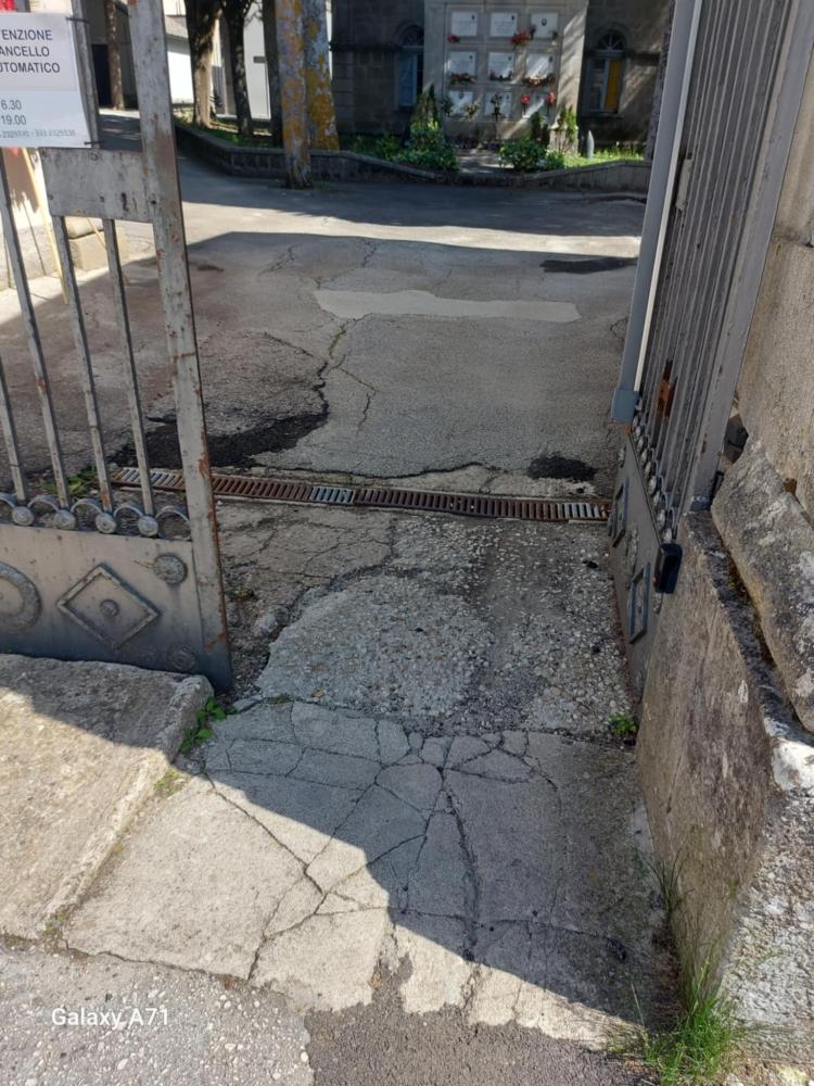 La pavimentazione subito oltre l’ingresso versa infatti in condizioni preoccupanti: non si tratta di un semplice dislivello, ma di un susseguirsi di buche evidenti, avvallamenti pronunciati e tratti sconnessi e disgregati. Questa superficie irregolare e deteriorata mette seriamente a rischio l’incolumità dei visitatori. A lamentarsi sono in molti, soprattutto anziani e familiari di persone sepolte, che frequentano abitualmente il cimitero e segnalano la difficoltà — e il pericolo concreto — di camminare su una superficie tanto degradata.