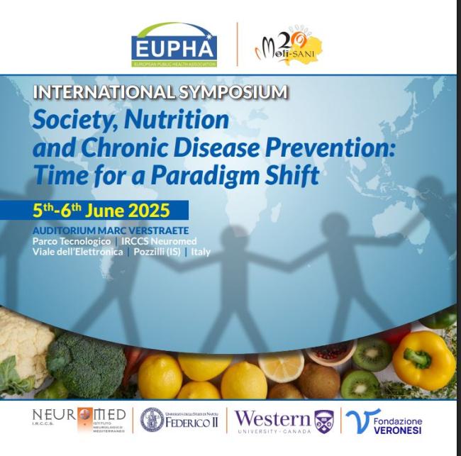 Un confronto internazionale sui nuovi orizzonti della prevenzione delle malattie croniche è quanto propone il simposio “Society, Nutrition and Chronic Disease Prevention: Time for a Paradigm Shift”, in programma il 5 e 6 giugno 2025, a partire dalle ore 9.30, presso l’Auditorium Marc Verstraete dell’I.R.C.C.S. Neuromed di Pozzilli. Organizzato dalle sezioni “Chronic Disease” e “Food and Nutrition” dell’Associazione Europea di Sanità Pubblica (EUPHA), in collaborazione con la Fondazione Veronesi, l’evento sarà introdotto da Saverio Stranges (Western University, Canada e Università Federico II di Napoli) e Giuseppe Grosso (Università di Catania), coordinatori delle rispettive sezioni promotrici.