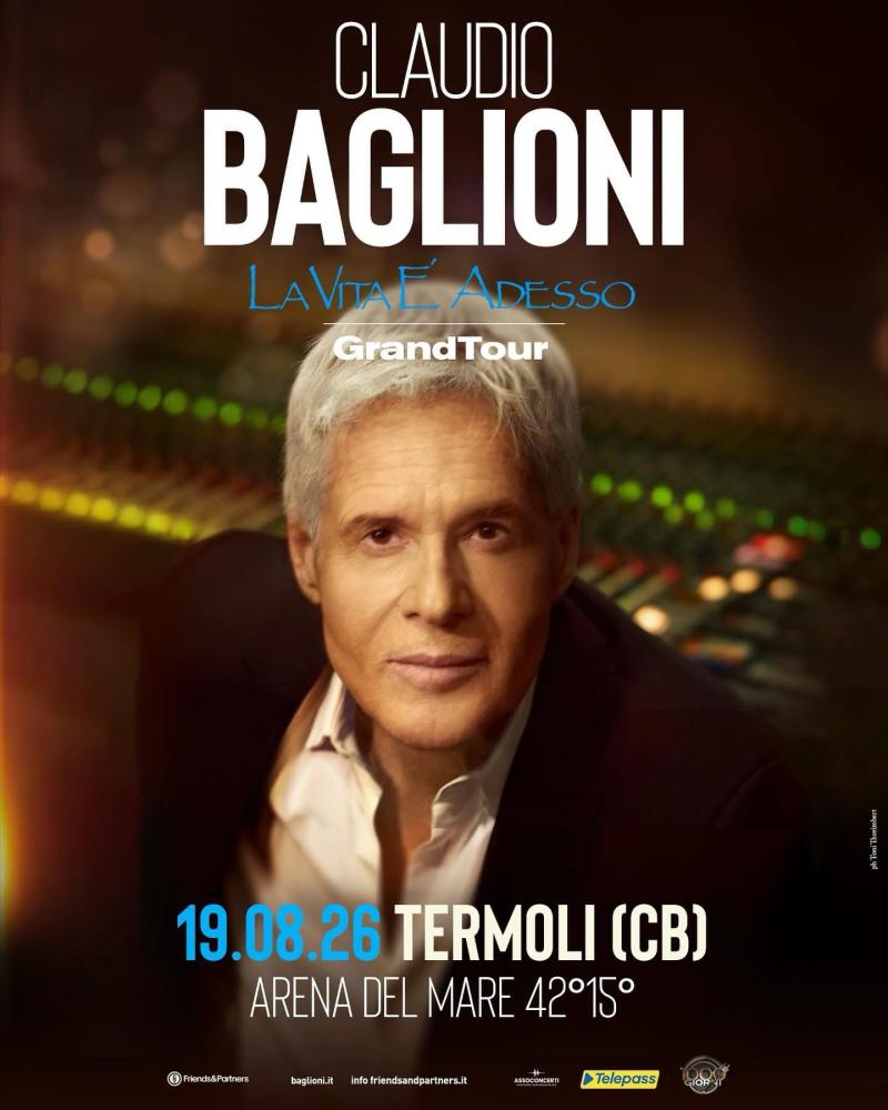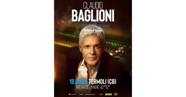 Il 19 agosto 2026, l’Arena del Mare di Termoli ospiterà Claudio Baglioni con il suo nuovo spettacolo, “La vita è adesso – Grand Tour”, un viaggio tra le emozioni e i brani che hanno segnato la sua carriera e intere generazioni.