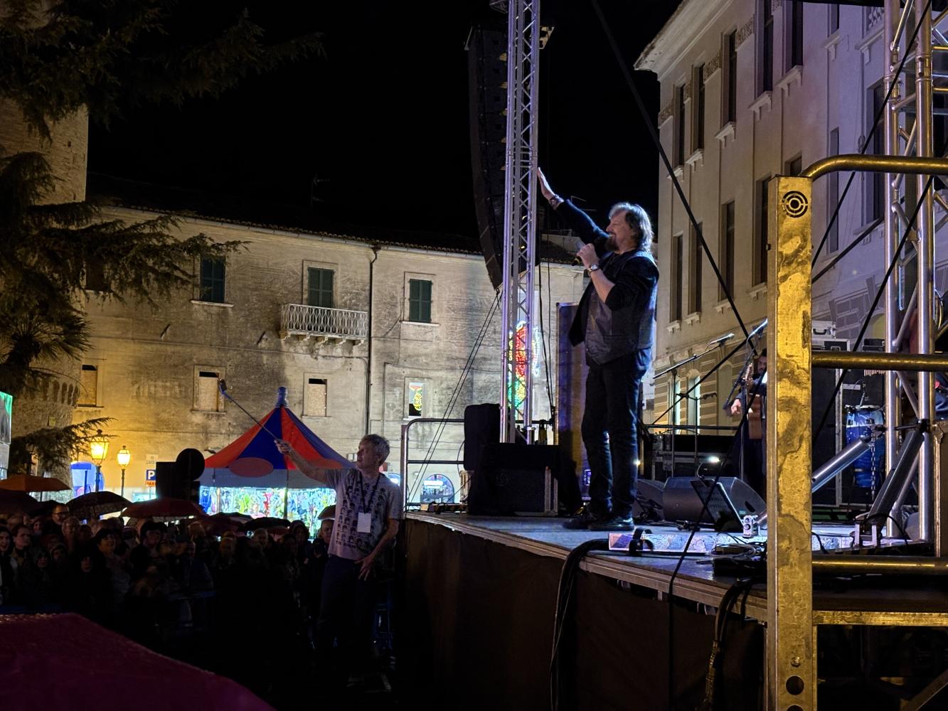 Guidati dal tastierista Beppe Carletti, cofondatore insieme al compianto Augusto Daolio, i Nomadi hanno regalato al pubblico vastese una serata intensa, tra nuove sonorità e i brani che hanno segnato la loro storia. La pioggia arrivata a fine concerto non ha fermato nessuno: tra ombrelli aperti e cori, la piazza è rimasta viva e unita in un grande abbraccio collettivo. In scaletta c’erano le canzoni che hanno segnato intere generazioni: da “Crescerai” a “Un pugno di sabbia”, da “Dove si va” a “Contro” – brano del 1993 ancora tristemente attuale alla luce delle tensioni internazionali. Spazio anche a “Io voglio vivere”, fino alla chiusura affidata all’inno per eccellenza della band: “Io vagabondo”, cantato all’unisono da una piazza in festa.