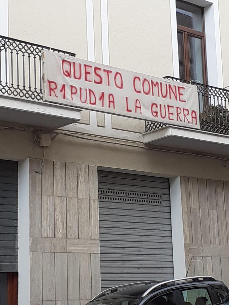 Come segno concreto di partecipazione, sul palazzo comunale di via Verdi è stato esposto uno striscione che richiama il testo costituzionale, trasformando l’edificio istituzionale in un simbolo di pace e di impegno civile.
