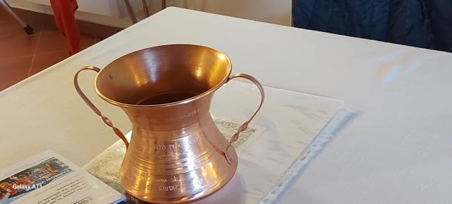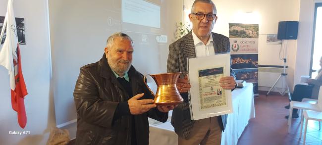 Durante la cerimonia, il primo cittadino ha ricevuto un attestato di merito e una tinozza in rame, opera dell’artista agnonese Filippo Catolino, maestro del rame, simbolo della tradizione artigianale locale.