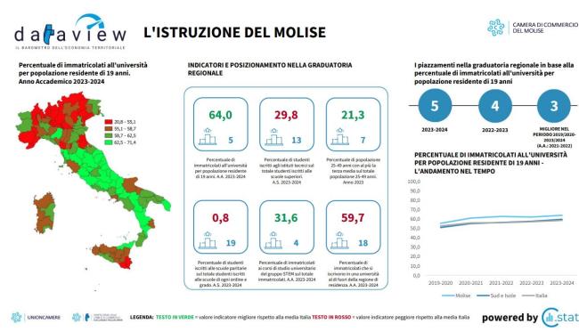 Tutte le infografiche relative al Molise – compresa quella dedicata al sistema dell’istruzione – sono consultabili sul sito camerale, nella sezione DataView: