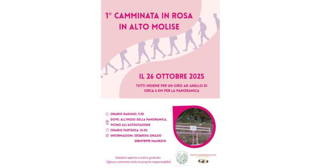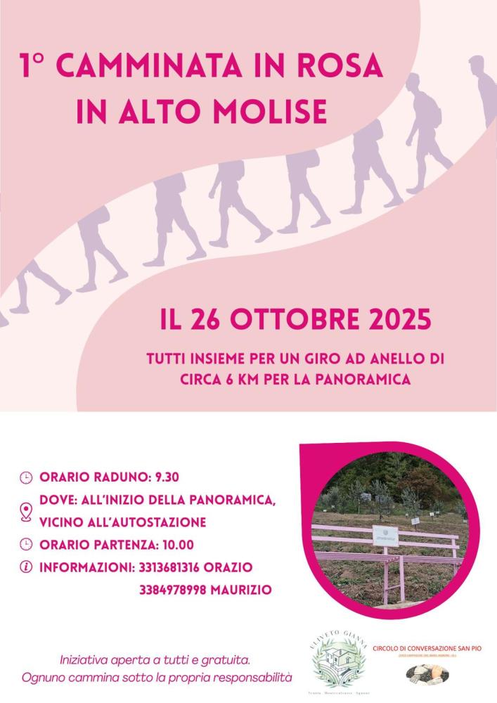 Un’iniziativa semplice ma dal forte valore simbolico, che colora di rosa le colline dell’Alto Molise e invita tutti a mettersi in cammino — insieme — per la salute e la vita.