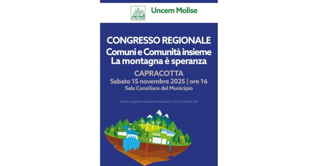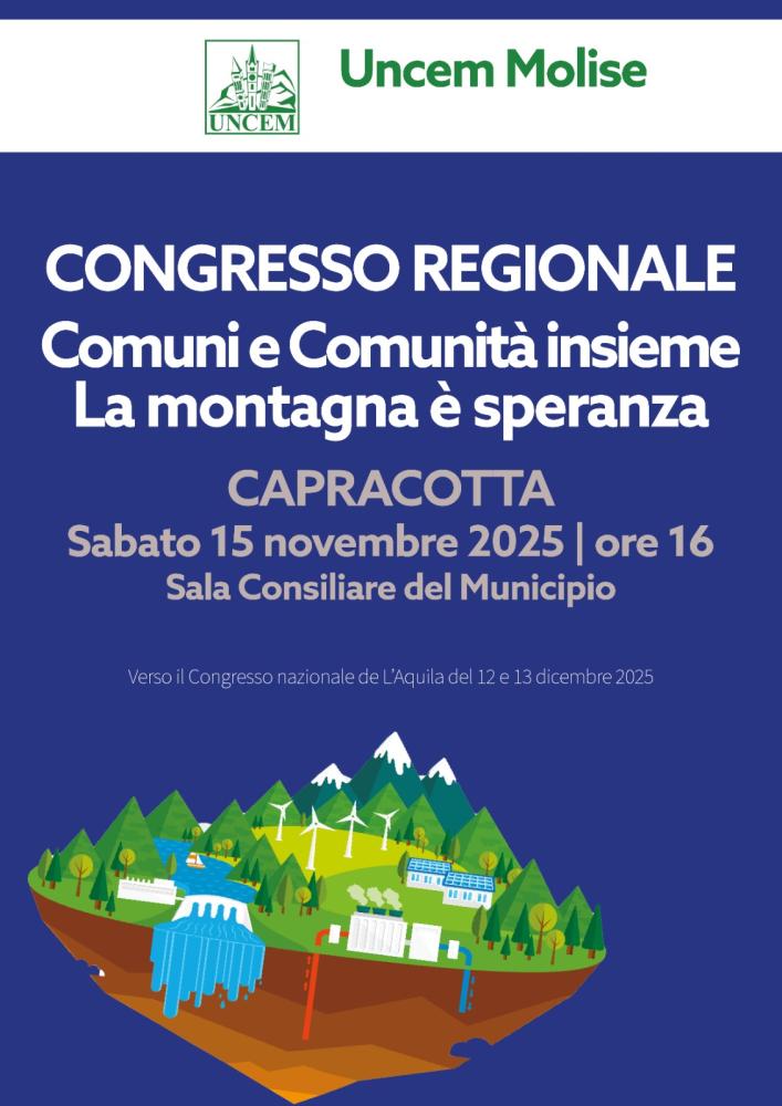 Un dialogo tra Comuni, Enti locali montani, imprese, associazioni, cittadini. Tutti protagonisti insieme, con Uncem, nel pomeriggio di sabato 15 novembre, dalle ore 16 in Municipio a Capracotta. Uncem organizza il Congresso regionale del Molise, con la Delegazione guidata da Candido Paglione. Non solo il rinnovo degli organi regionali dell'associazione nata nel 1952, verso il Congresso nazionale del 12 dicembre all'Aquila. "Quella di sabato non è solo l'occasione per far incontrare i Comuni montani - evidenzia Paglione, Presidente Uncem Molise - Sono tutti invitati, Sindaci, imprenditori, Sindacati, rappresentanti delle Categorie, studenti e docenti universitari, per un dialogo sul futuro. Aree interne e montagne del Molise devono avere una nuova attenzione del Consiglio regionale e della Giunta. La Regione deve costruire le Unioni montane di Comuni per rimediare alla chiusura frettolosa delle Comunità Montane e deve investire fondi propri in un nuovo Fondo regionale per la montagna, che si sommi al fondo nazionale, dal 2025 dimezzato. Chiediamo che, a ventidue anni dalla sua approvazione, la legge Regionale sulla Montagna (legge 13/2003) venga finalmente attuata. Serve un’azione più forte regionale, più incisiva. Il Rapporto Montagne Italia mostra qualche segnale positivo, ma serve una attenzione politica-istituzionale nuova. Non basta dire che sono belle e importanti le aree interne, quasi riconoscendone una internità rispetto a qualcosa più importante e centrale. Guardiamo alle geografie del Molise. Alla montagna che ci prova, che crede nel futuro, che innova e genera sviluppo. E chiede Politiche alla Politica. Ne parliamo al Congresso".