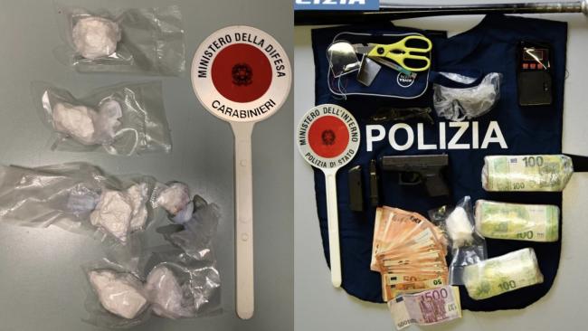 I controlli sono stati mirati nei confronti di soggetti dediti allo spaccio di stupefacenti e che si ritenevano detentori di armi non legalmente detenute e strumenti atti ad offendere e sono consistiti anche nell’esecuzione di diverse perquisizioni domiciliari, veicolari e personali. I sospetti delle forze dell’ordine si sono in effetti ritenuti fondati in quanto nel corso di una prima perquisizione presso l’abitazione di un soggetto di 44 anni, pregiudicato, veniva rinvenuta una pistola calibro 9x21 con due caricatori riforniti per un totale di 16 cartucce, un involucro contenente 55 grammi di sostanza stupefacente del tipo cocaina, nonché strumentazione per il confezionamento di dosi, una mazza da baseball, un coltello a serramanico e la somma di circa 30 mila euro in contanti. Successivi accertamenti esperiti nei confronti dell’arma da fuoco permettevano di stabilire che si trattava del provento di un furto in abitazione compiuto anni addietro in un’altra in provincia. Per tale motivo, l’uomo veniva arrestato in flagranza di reato per i delitti di detenzione ai fini di spaccio di sostanza stupefacente del tipo cocaina, detenzione abusiva e ricettazione dell’arma da fuoco.