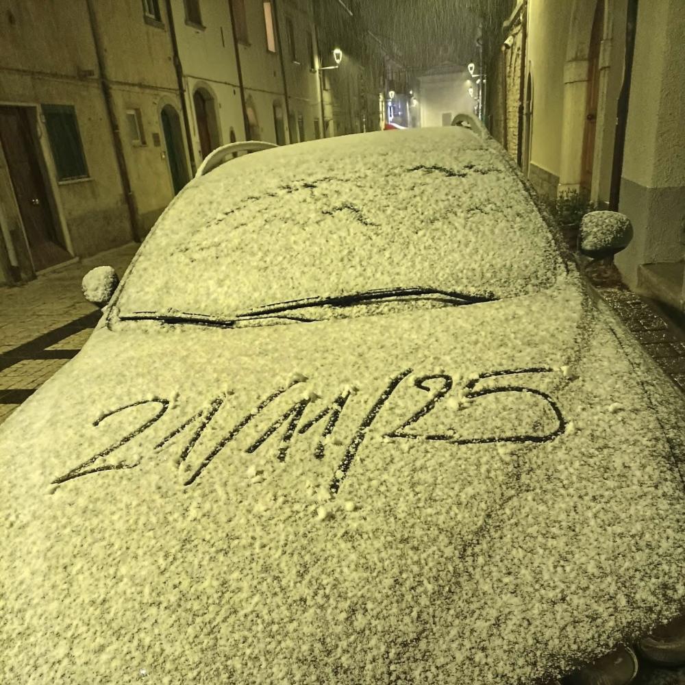 Nell’immortalare il momento, qualcuno ha scritto la data sul sottile strato di neve comparso sul cofano di un’automobile, a testimonianza che l’immagine è stata scattata oggi.