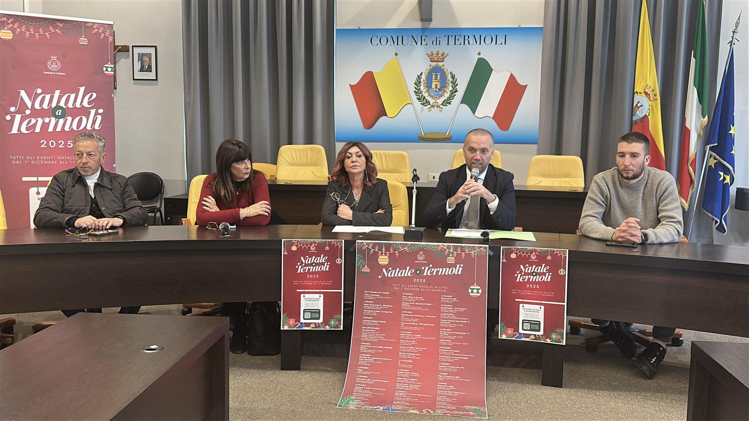 Termoli si prepara ad accogliere le festività con un calendario ricco di iniziative che accompagneranno la città dal 1° dicembre 2025 all’11 gennaio 2026. Gli eventi natalizi sono stati presentati questa mattina nella Sala Consiliare del Comune, alla presenza del vicesindaco e assessore alla Cultura e Turismo Michele Barile, insieme alla struttura dell’assessorato.