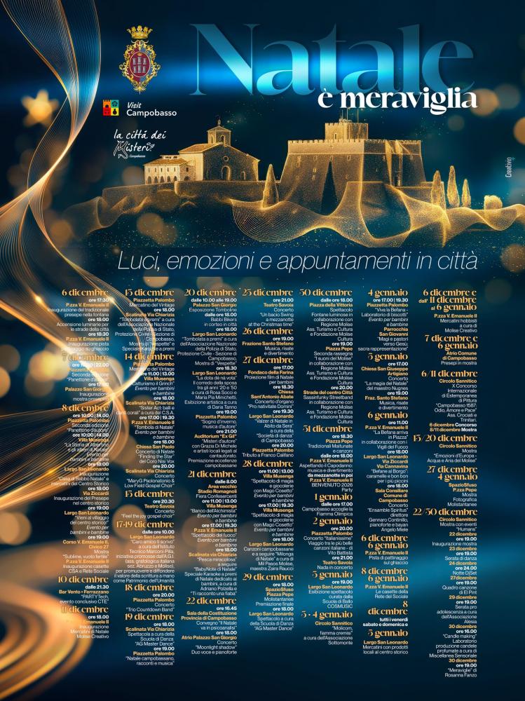• ore 19:30 Largo San Leonardo, “Valzer di Natale in Abito da Sera” a cura della “Società di danza” di Campobasso;