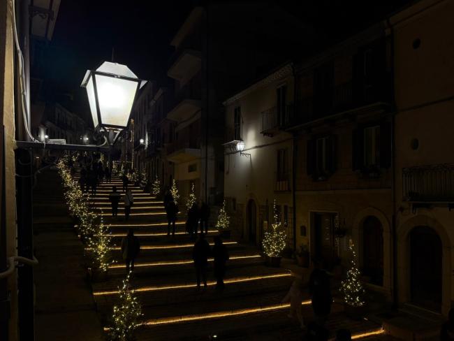 A Trivento il periodo natalizio si è aperto con uno spettacolo di luci, musica, balli e partecipazione che ha superato ogni aspettativa. La monumentale Scalinata di San Nicola si è illuminata alle 18 tra l’entusiasmo di tantissime persone.