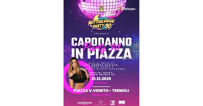 Martedì 31 dicembre, a partire dalle ore 22.00, Piazza Vittorio Veneto si trasformerà in un grande palcoscenico a cielo aperto per il Capodanno “Notti Selvagge Party ’90”, una serata all’insegna dell’energia, della musica e del divertimento.