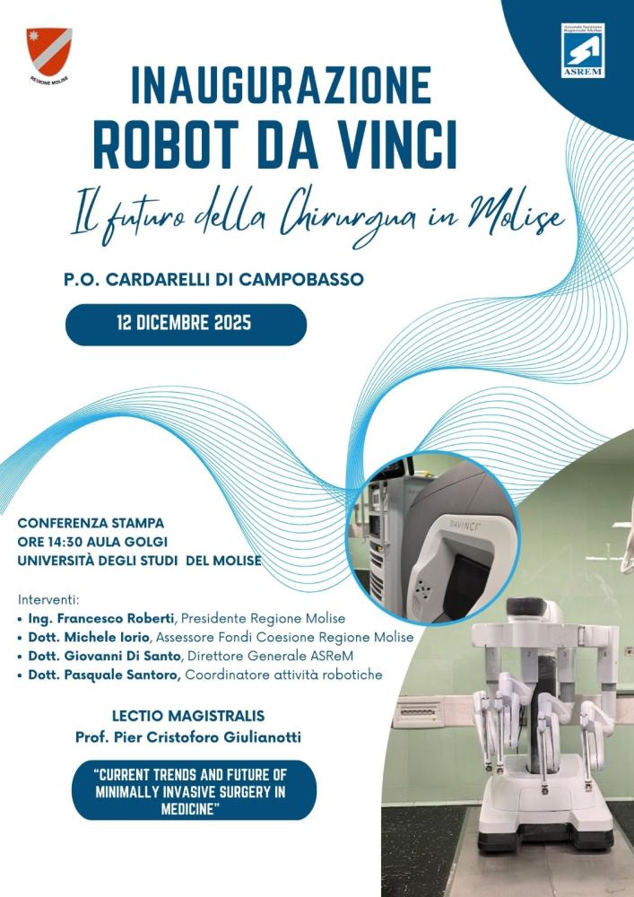 La sanità molisana compie un significativo passo avanti nell'innovazione tecnologica. Domani, presso il P.O. Cardarelli di Campobasso, l'inaugurazione ufficiale del Robot Da Vinci, un sistema di chirurgia robotica all'avanguardia che promette di ridefinire gli standard di cura e l'offerta sanitaria regionale.