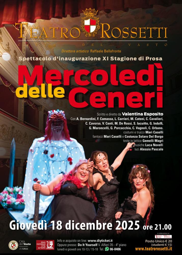 “L’apertura della stagione di prosa del Rossetti rappresenta un momento centrale per la vita culturale della nostra città – affermano il sindaco Francesco Menna e l’assessore alla Cultura e al Turismo Nicola Della Gatta –. Inauguriamo il cartellone 2025-2026 con uno spettacolo di grande valore artistico e sociale, capace di stimolare riflessione e consapevolezza. Invitiamo cittadini, famiglie e visitatori a partecipare e a vivere il teatro come spazio di incontro, crescita e condivisione. Il Teatro Rossetti continua a essere un punto di riferimento per la cultura e per l’attrattività di Vasto”.
