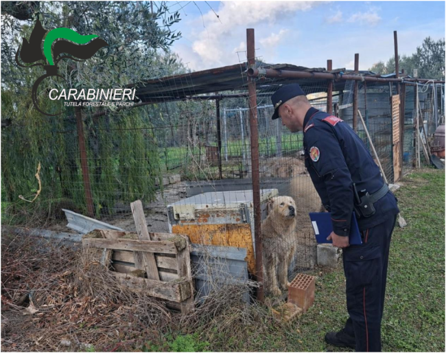 Nel corso degli ultimi mesi intensa è stata molto intensa l’attività di prevenzione e repressione degli illeciti commessi in danno agli animali da parte dei militari del Nucleo CC Forestale di Chieti. Innumerevoli sono state le segnalazioni pervenute da parte di cittadini, riguardo le condizioni di detenzione e la gestione dei cani da parte dei privati. Molte sono state le sanzioni amministrative riguardanti le violazioni alla Legge Regionale 47/2013 in materia di randagismo e gestione degli animali d’affezione, come l’omessa iscrizione del cane all’anagrafe canina entro i termini stabiliti dalla legge, detenzione dei cani a catena ed omesse denunce di nascita o smarrimento. Fra le operazioni più rilevanti, all’esito di un’ispezione eseguita congiuntamente ai Servizi Veterinari dell’ASL di Chieti i CC Forestali di Chieti hanno accertato che un cacciatore che deteneva 8 cani (fra cui tre cuccioli) in “recinzioni non adeguate con punte sporgenti, coperture insufficienti a garantire idoneo riparo per le condizioni climatiche avverse, trascurata igiene dei ricoveri e ciotole dell’acqua contenenti microalghe contaminanti”.