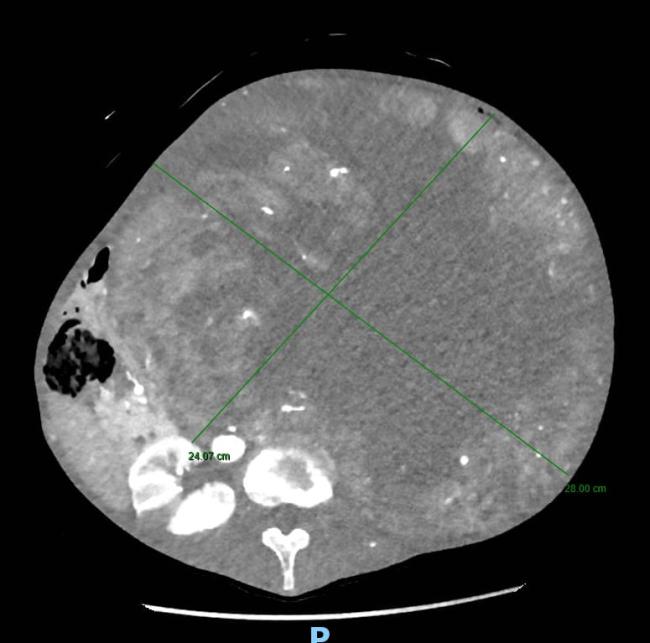 Tuttavia, alla visita clinica era da subito apparso evidente che il sintomo stipsi era secondario alla presenza di una voluminosa massa addominale di dimensioni spropositate che i successivi accertamenti diagnostici rivelavano essere a partenza dal rene sinistro. Tale massa – paragonabile a un grosso cocomero – occupava ormai l’intera cavità addominale, comprimendo oltre all’intestino tenue ed al colon, organi importanti quali il fegato, la milza, lo stomaco, il pancreas ed il duodeno e compromettendo la circolazione sanguigna di tali strutture.