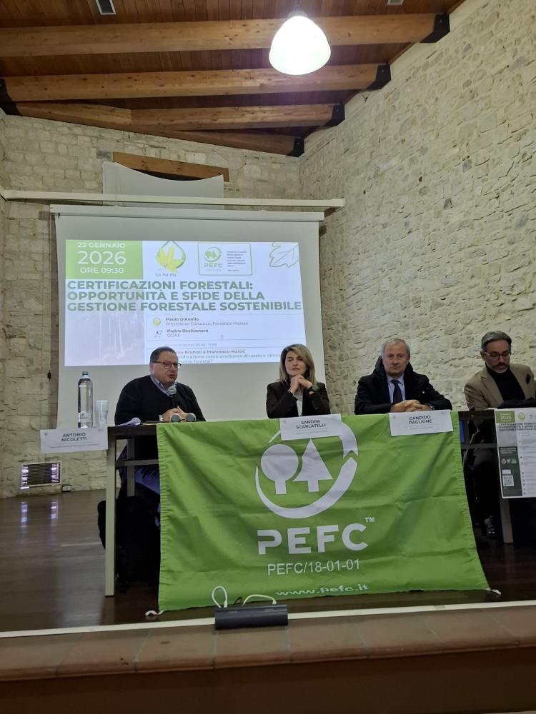 Il Consorzio Forestale del Matese ottiene la prima certificazione PEFC di Gestione Forestale Sostenibile in Molise. Il risultato è stato presentato a Sepino (CB) durante l’incontro “Certificazioni forestali: opportunità e sfide della gestione forestale sostenibile”, promosso dal Consorzio Forestale del Matese e da PEFC Italia con Legambiente, UNCEM e l’Università degli Studi del Molise. La certificazione PEFC, rilasciata il 16 novembre 2025, riguarda 4.418 ettari di superfici forestali nei comuni di Sepino, Campochiaro, Cercepiccola, Guardiaregia e San Giuliano del Sannio.
