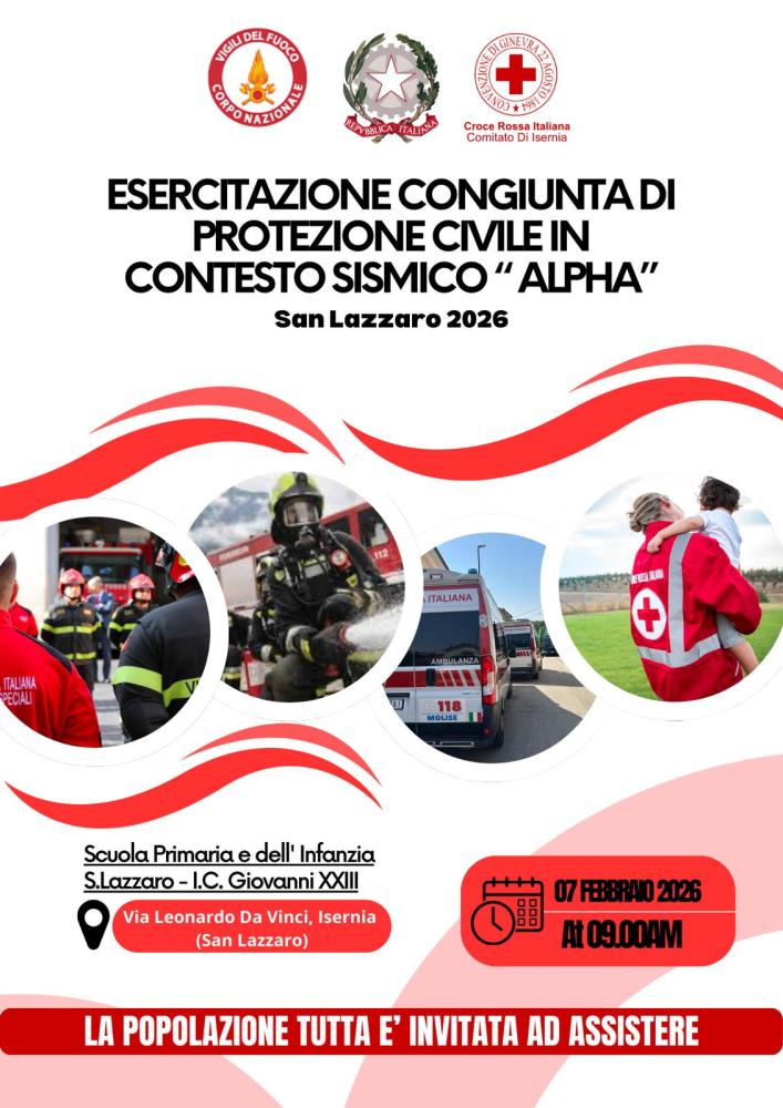 Le attività esercitative si svolgeranno nei dintorni del citato edificio scolastico e vedranno la partecipazione dei Vigili del Fuoco, delle locali FF.OO, della Polizia Stradale, del Comune di Isernia, del Servizio sanitario di urgenza-emergenza medica 118, di Arpa Molise, di E-distribuzione e della Protezione civile regionale; strutture queste che siederanno al tavolo del Centro Coordinamento Soccorsi (C.C.S.) coordinato dalla Prefettura di Isernia. L’iniziativa, rientrante altresì nell’alveo delle attività organizzate nell’ambito del Protocollo d’intesa siglato tra la Prefettura di Isernia, l’Ufficio scolastico regionale e la Fondazione Lello Lombardi per la Seconda edizione del Festival dell’Educazione civica (2025-2026), ha lo scopo di testare l’efficacia dei modelli di intervento delle procedure operative e dei flussi informativi previsti dai differenti piani di emergenza, nonché di verificare la capacità di risposta, l’interoperabilità delle comunicazioni ed il coordinamento tra le differenti componenti istituzionali ed operative localmente coinvolte. Lo scenario ipotizzato, in un contesto critico e climaticamente avverso, consentirà, in particolare, di simulare gli effetti diretti e indiretti di un evento sismico su un edificio scolastico, quali danni al patrimonio edilizio e infrastrutturale, interruzioni dei servizi essenziali e necessità di assistenza agli studenti in fase post evacuazione dell’edificio. In particolare, il contesto esercitativo simulato riguarderà l’edificio scolastico che ospita la scuola dell’infanzia Primaria dell’Istituto Comprensivo Statale “Giovanni XXIII”, che, dal canto proprio, provvederà a testare la procedura interna di evacuazione.