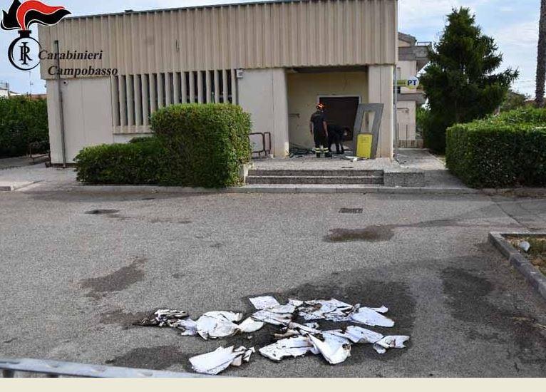Nella circostanza, quattro malfattori, tutti travisati con passamontagna e cappucci, utilizzando due ordigni esplodenti artigianali del tipo “marmotte”, avevano gravemente danneggiato lo sportello ATM per i prelievi, riuscendo ad asportare il denaro contenuto nella cassaforte, dandosi poi alla fuga a bordo di un’autovettura Alfa Romeo Giulietta, risultata asportata poco prima in San Salvo (CH). La forte deflagrazione aveva inoltre provocato gravi danni anche alla struttura dell’ufficio postale con conseguente pericolo per le persone e impossibilità di fruire del servizio