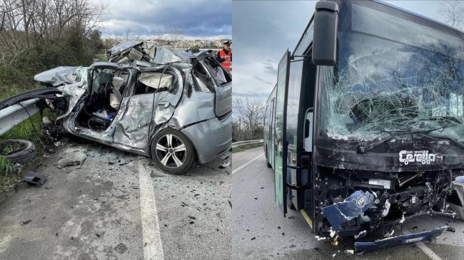 Drammatico incidente questa mattina a San Salvo, in via Trignina, nella zona industriale. Per cause in fase di accertamento una Fiat Grande Punto si è scontrata frontalmente con un autobus della Cerella, privo di passeggeri. Nell’impatto ha perso la vita un 21enne del posto, morto sul colpo. Inutili i soccorsi di Vigili del fuoco, Carabinieri e sanitari del 118. Strada chiusa e comunità sotto shock.
