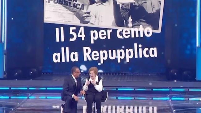 Mentre scorrevano le immagini in bianco e nero del referendum che sancì la nascita della Repubblica, la grafica celebrativa ha però tradito l’intento istituzionale. La parola “Repubblica” è diventata “Repupplica”, con un errore tanto evidente quanto inaspettato. In un momento costruito con cura per celebrare memoria e identità nazionale, quella doppia consonante fuori posto ha fatto più rumore di qualsiasi nota stonata.