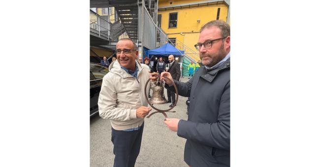 Questa mattina Conti ha ricevuto con entusiasmo l’opera della Pontificia Fonderia Marinelli di Agnone, ammirandone i dettagli, compreso il suo nome inciso sul metallo. “È bellissima”, ha commentato, poi ha fatto risuonare la campana e ha scherzato: “Ma è davvero mia?”.