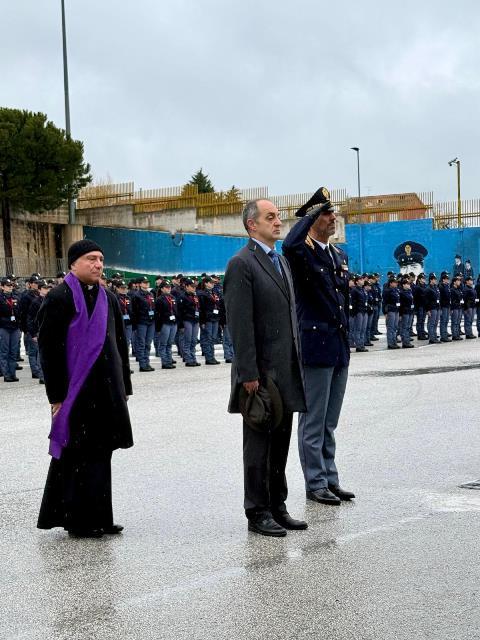 La cerimonia ha avuto inizio con l'alzabandiera nel piazzale dell'Istituto ed è proseguita con la deposizione di una corona di fiori, realizzata per l'occasione dagli Allievi del 233° Corso e benedetta dal Cappellano della Polizia di Stato, don Francesco Rinaldi. Alla commemorazione hanno presenziato il Questore della provincia di Campobasso Domenico FARINACCI ed il Direttore della Scuola Dante PANATTA, insieme al personale della Scuola e agli Allievi in formazione.