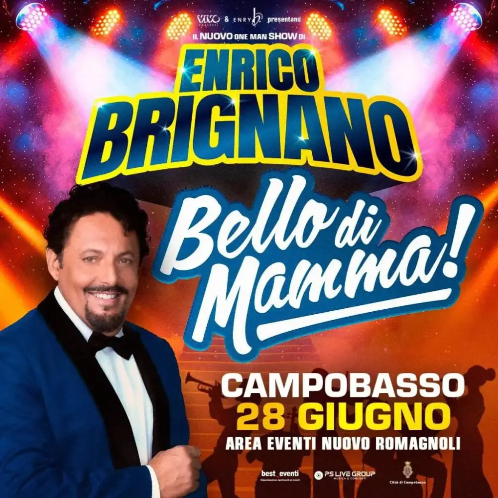 Dopo il lungo impegno con “I 7 Re di Roma”, la commedia musicale che ha raccolto un forte consenso in tutta Italia, Enrico Brignano torna al one man show con “Bello di mamma!”. Lo spettacolo, già applaudito nell’estate 2025 nelle arene all’aperto, è ora approdato in una nuova versione pensata per i palazzetti dello sport e questa estate arriverà anche in Molise: il 28 giugno tappa all’area eventi di Selvapiana per il Campobasso Summer Festival. Le prevendite saranno aperte alle 14 di domani, mercoledì 25 marzo, online su Ticketone e Ciaotickets e poi dalle 14 di lunedì 30 marzo anche nei punti vendita autorizzati.