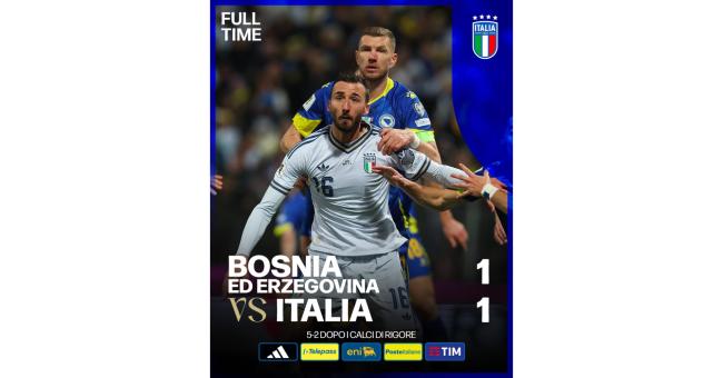 Ai calci di rigore la Bosnia è impeccabile. L’Italia no. Gli errori di Pio Esposito e Bryan Cristante risultano decisivi e consegnano la qualificazione ai padroni di casa, che si impongono 4-1.