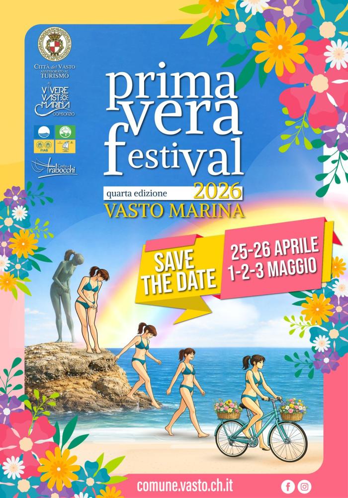 Vasto Marina si prepara a rivivere un’esplosione di colori e spettacoli con la quarta edizione del Festival di Primavera. Un appuntamento ormai atteso che, dal 25 al 26 aprile e dal 1° al 3 maggio 2026, animerà il lungomare con un ricco calendario di iniziative ricreative e culturali, tra concerti, musica e momenti di animazione pensati per tutte le età . Il programma completo della manifestazione, patrocinata dall’assessorato alla Cultura e al Turismo del Comune di Vasto e realizzata in collaborazione con il Consorzio Vivere Vasto Marina, sarà diffuso nei prossimi giorni sul sito e i canali social dell’ente.