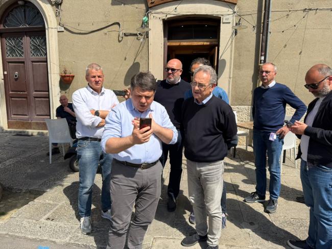 Nella foto: Sindaco Saia, consigliere comunale Mario Petrecca, Andrea Di Lucente assessore regionale, ingegnere Nicola Sciarra, Gaspare Tocci direttore regionale Protezione Civile, architetto Luca Cifelli dirigente settore tecnico Provincia e Lorenzo Di Iacovo geometra Provincia