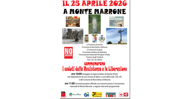 “ Questi sono elementi che si legano indissolubilmente con la difesa dei valori costituzionali e con la lotta, purtroppo ancora necessaria, per il riconoscimento di un lavoro sicuro, dignitoso e contrattualmente giusto” commenta il Segretario Generale della CGIL Molise Paolo De Socio. “ Monte Marrone non è solo memoria, - continua De Socio - ma in un mondo pervaso dai soprusi e dalle guerre che cancellano i pilastri democratici e diplomatici affermati dopo le sciagure belliche del secolo scorso, eventi come quello del 25 aprile molisano rappresentano un monito attuale: la LIBERTA’ conquistata dai partigiani e dagli alleati si fonda su valori solidi come l'antifascismo, pilastro della nostra Repubblica, sulla solidarietà e sulla PACE .