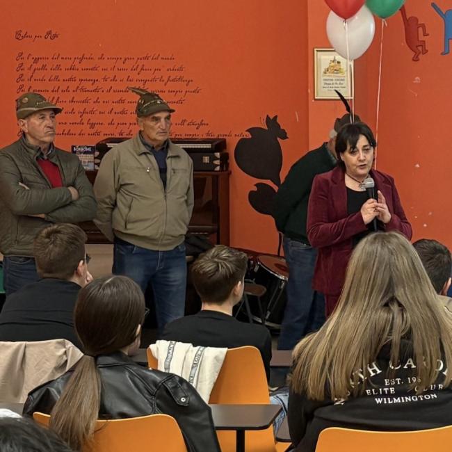 Spazio anche alla curiosità relativa ai simboli degli alpini, come la penna nera, il cui richiamo è stato collegato all’opera lirica “Ernani” di Giuseppe Verdi del 1844. Un saluto caloroso agli ospiti è stato infine tributato dagli allievi e dalla dirigente scolastica, che ha unito i ringraziamenti alla referente di plesso professoressa Fochitto e ai docenti dei consigli di classe per l’organizzazione e la partecipazione, rinnovando l’auspicio che questi incontri intergenerazionali trovino il loro valore fondante nelle parole della senatrice Liliana Segre: “Coltivare la Memoria è ancora oggi un vaccino prezioso contro l’indifferenza”.