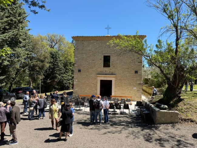 È stato inoltre pavimentato il sagrato, insieme ai marciapiedi laterali, con pietra locale, e sono stati installati faretti per illuminare esternamente le facciate della chiesa. Rifatti anche gli infissi in legno di castagno, la cornice perimetrale interna, adeguato l’impianto elettrico e rinnovata l’illuminazione interna con faretti e strisce LED. Infine, è stato rifatto l’impianto audio ed è stata tinteggiata l’intera chiesa.