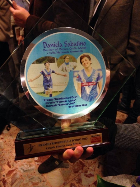 CASTELGUIDONE - Un altro premio per la bomber del Brescia calcio femminiel Daniela Sabatino, originaria di Castelguidone.