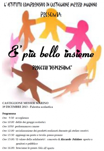 CASTIGLIONE MESSER MARINO - Riempire di significato una parola che, soprattutto a Natale, viene invece ammantata di retorica e vuota pomposità: questa la finalità che il dirigente, i docenti e i genitori dell’Istituto Comprensivo di Castiglione hanno voluto dare al percorso “E’ più bello insieme”.