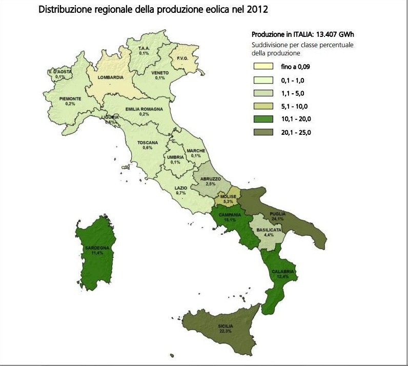 ABRUZZO E MOLISE - Sono ormai anni che si protrae la lotta a favore o contro l'installazione di impianti eolici sui nostri monti. Tuttavia i parchi creati e montati nell'ultimo periodo hanno sicuramente incrementato la produzione di elettricità derivante da fonti energetiche rinnovabili. Sembra infatti che - dati calcolati a fine 2012 - il Molise riesca a produrre, con 27 impianti, ben 717,2 GigaWatt di corrente elettrica. Al contrario, il confinante Abruzzo, presentando 'solo' 18 parchi riesce a produrre 334,0 GigaWatt.