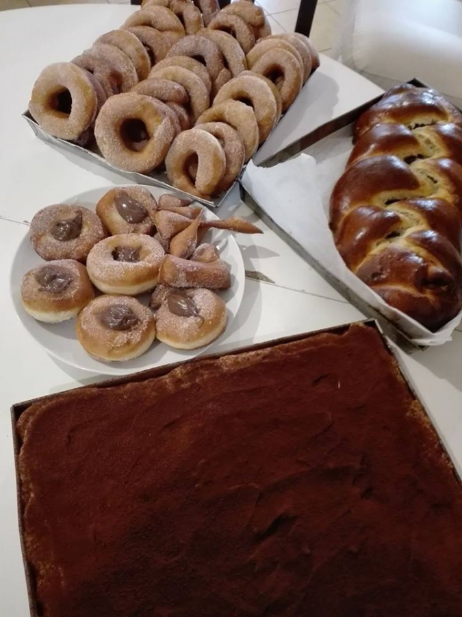 Nella foto di Luisa Di Menna di Agnone, dolci preparati per la giornata di Ferragosto: Caiambelline, Zuppa inglese, bomboloni, treccia alla nutella.
