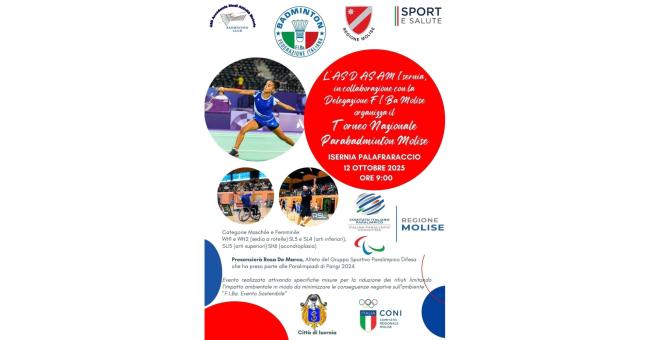 Isernia si prepara ad accogliere un evento di grande rilevanza sportiva e sociale: il Torneo Nazionale Parabadminton Molise. L'iniziativa, che celebra i valori dell'inclusione e dello sport per tutti, è organizzata dall'ASD ASAM Isernia in stretta collaborazione con la Delegazione F.I.Ba. Molise. L'appuntamento è fissato per sabato 11, giornata di allenamento, e per domenica 12 ottobre 2025 presso il Palafraraccio di Isernia, con inizio alle ore 9:00 per il Torneo Nazionale e le premiazioni.
