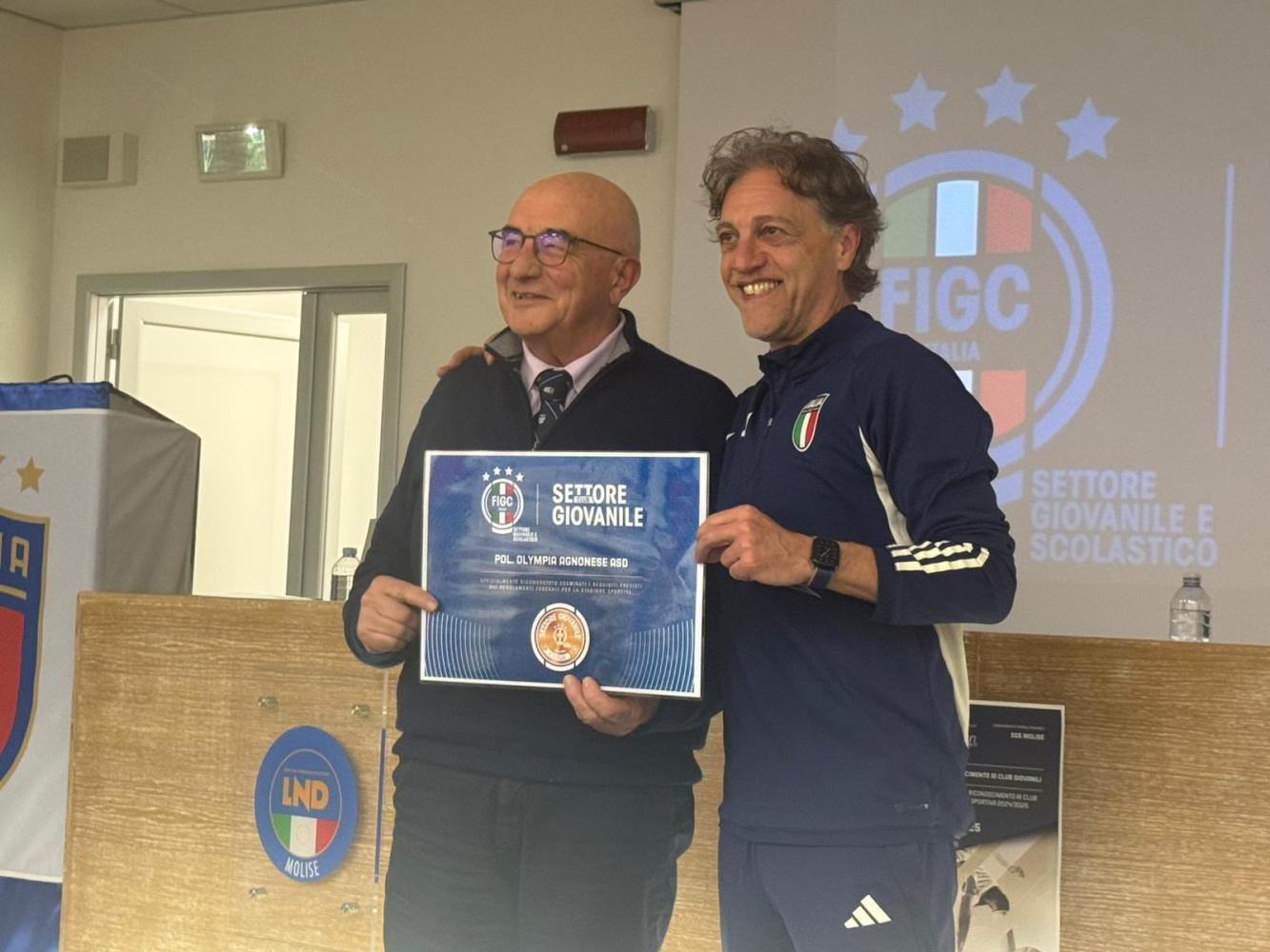 Un riconoscimento che, seppur piccolo nella forma, rappresenta un grande traguardo per la gloriosa Olympia Agnonese, confermando la qualità del lavoro svolto e fungendo da ulteriore stimolo per continuare a operare al meglio, nell’interesse dell’intera comunità agnonese e soprattutto dei giovani atleti.